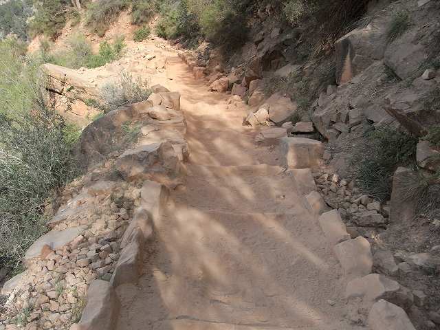 グランドキャニオンには、何本か谷を下る道が整備されていますが、このうち最もメジャーなのがブライトエンジェルトレイルです。