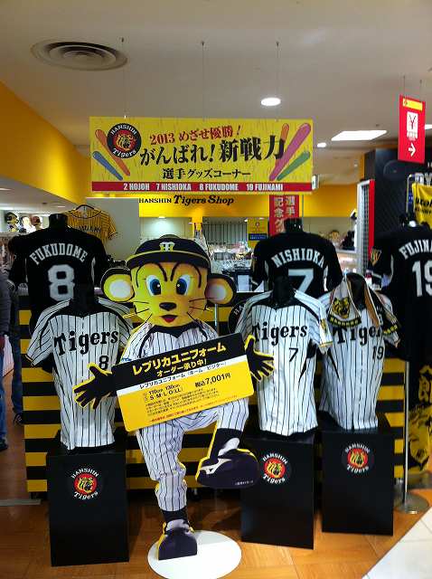 2013年3月にタイガースショップを訪れましたが、この年は新戦力の西岡、福留をはじめ、ルーキーの藤浪くんのグッズもたくさん置いておりました。