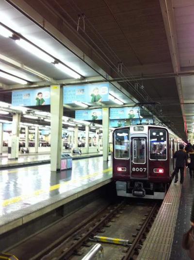 阪急電車のターミナルで、ここから京都、神戸、宝塚方面へ向かう電車がひっきりなしに発着しています。