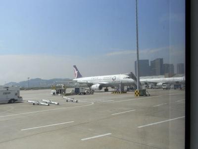 香港国際空港では、ボーディングブリッジではなく、タラップでの搭乗でした。経費を節約しているのではないかと不安になりましたが、上海ではボーディングブリッジだったので、たまたまなんでしょう。