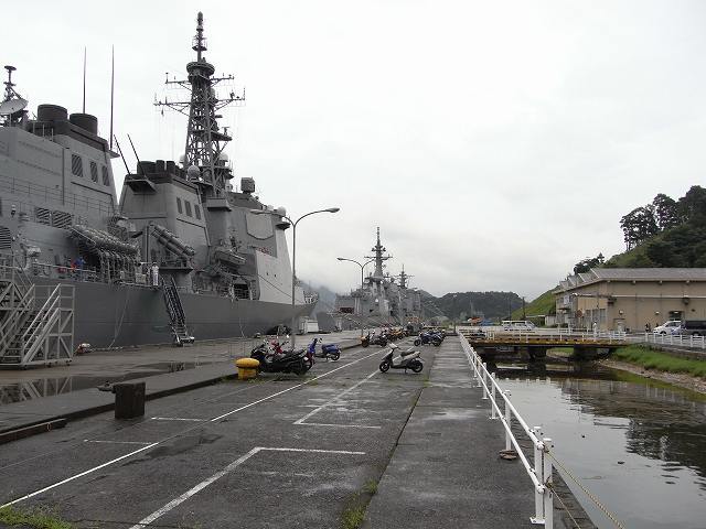 入り口で名前を書くだけで岸壁まで行くことができます。船にも入れることもあります。私が行った時は補給艦に入ることができました。もっとも雨だったので、甲板には上がれませんでしたが。- 旅行時期
