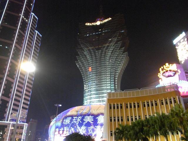 建物の形が、空に向かって膨らんでいるので、非常によく目立ちます。向かいのリスボアは伝統ある感じなのに対して、こちらは近代的なカジノです。飲食店やショースペースもあり、単なるカジノではありません。