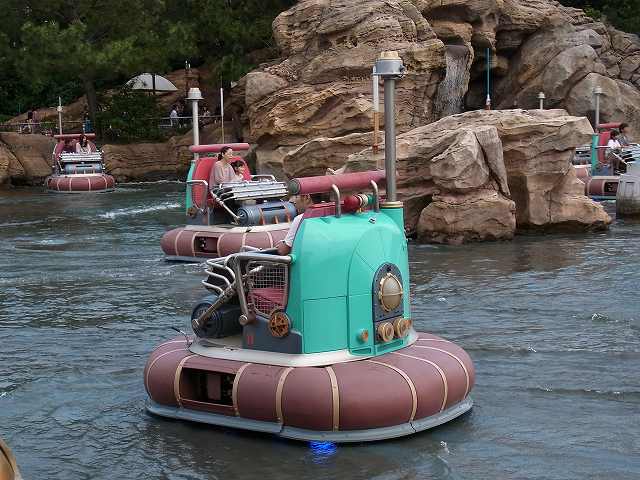 妻が好きなアトラクションなので、1日2度訪れたんです。水の上をどこに行くかがわからないとう設定のアトラクションなんですが、水の上を見るとルートが黒くなっていて、わかってしまいます。これがちょっと残念。
