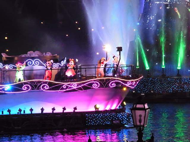 幸運というか妻のマメなチェックのおかげで、このショーが見れる時間帯にミラコスタのレストランを予約できました。そしてレストランの席から見ることができました。