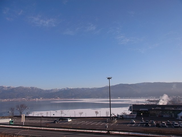 午前中に見た諏訪湖は、一部ですが氷が張っていました。また、夕方には八ヶ岳が非常に美しく見れました。