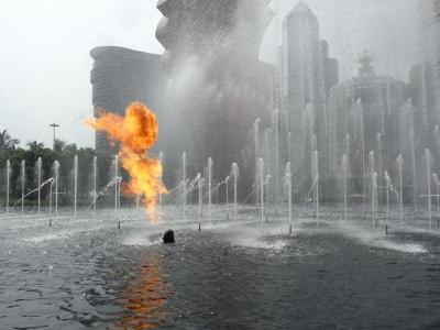この前の噴水ショーは非常におもしろく、迫力があります。昼と夜で趣向を変えているようで、夜はどちらかといえば静かです。昼は、炎が出てくるなど、熱くさせてくれるものがあります。- 旅行時期