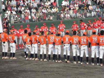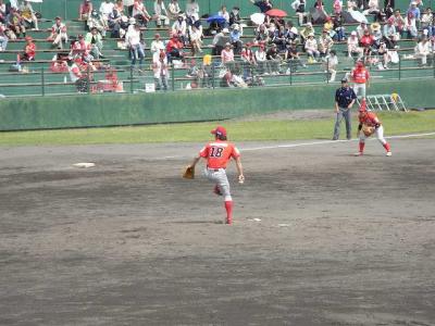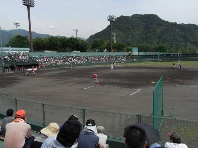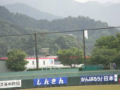 信濃グランセローズの試合が見れます。後方に走る電車はなんと・・・