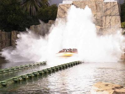 雨だったので、出足が鈍っていたせいか、お昼でも25分程度の待ち時間でした。乗ってみると、パイレーツオブカリビアンのシーンのジオラマが左右に広がっています。非常にコミカルで楽しめます。