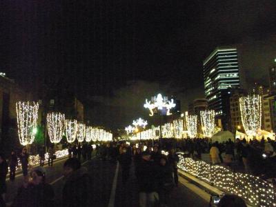 訪れたのは2010年の12月ですが、2005年くらいからやっていたのかなと思います。当時は青色ダイオードで木々を彩るだけでしたが、今は中之島公会堂がライトアップされて非常に美しくなっています。
