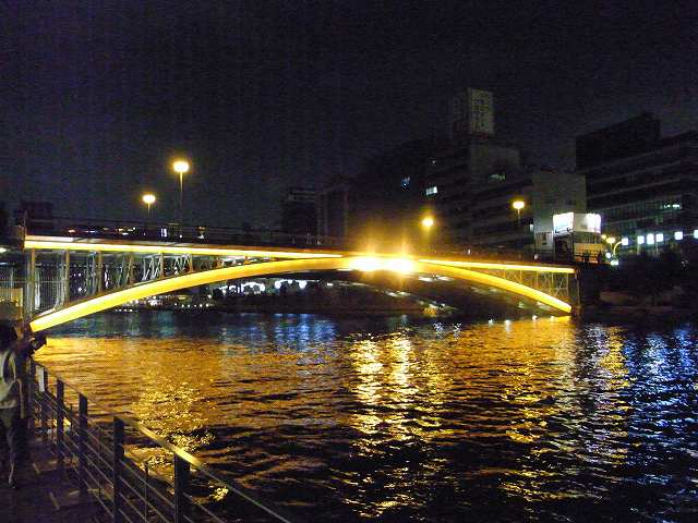 唯一、観光的な値打ちがあるとすれば、ライトアップが美しいことです。写真は、水都大阪というイベントの時の写真です。