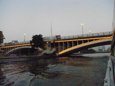 この橋の周辺は、川沿いにビルが建っているため、なかなか川を見ることができません。