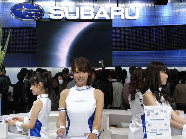 来訪者の圧倒的多数が男性です。車を見に来る人と、コンパニオン目当ての人がいて、ごっついカメラをコンパニオンに向けまくっている人もいました。しかも、コンパ二オンばかりか、メーカーの受付の女性も撮影していました。そして、みんな嫌な顔どころか、笑顔で撮影に応じておりました。ちょっと独特な雰囲気でした。
