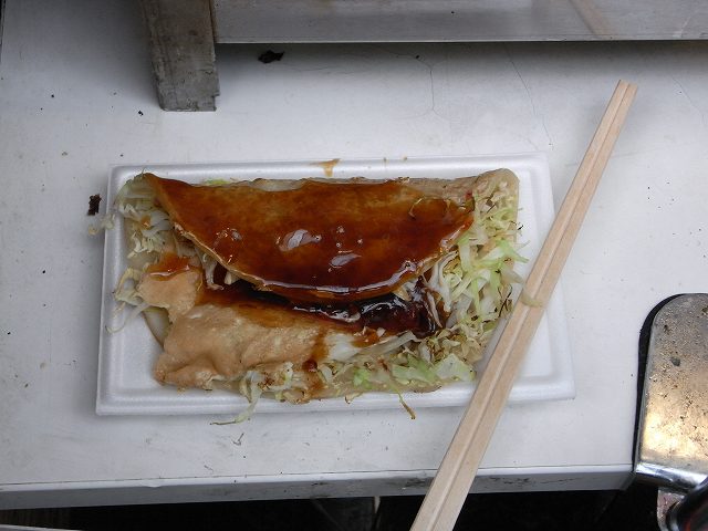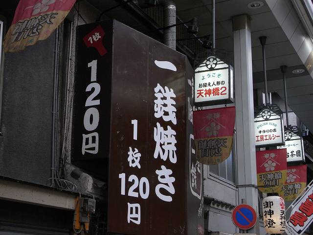 JR天満駅から地下鉄南森町駅まで歩きましたが、途中で露店のお店で粉もんをたくさん食べました。