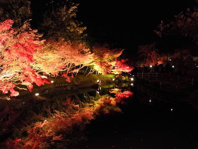 ここはイルミネーションが美しいことが有名ですが、訪れたのが12月1日でして、ここは紅葉も美しいです。池にきれいに映るような工夫もしております。