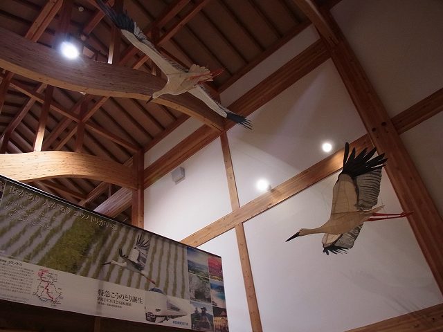 最初は、せいぜいオリの中にいるコウノトリが見れたり、コウノトリの剥製が展示されている程度だろうと思っていました。確かに、そういうものもありましたが、現在は61匹のコウノトリが放鳥されていて、大空を飛ぶ姿も見ることができました。