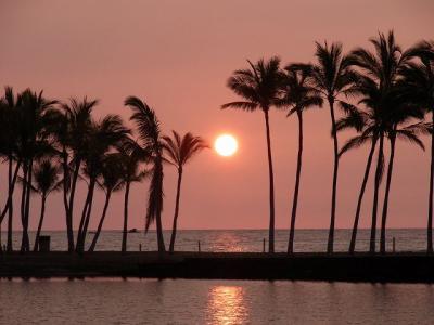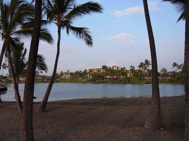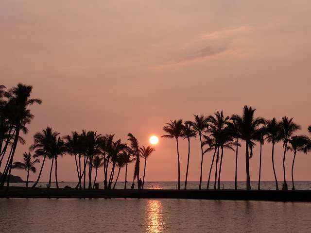 このホテルの敷地にある、アナエホオマルビーチにサンセットを見に行きました。ガイドブックに、ここからの夕焼けが最も美しいと書いていたからです。