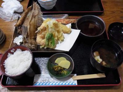 妻がカニを多くは食べれないんですが、城崎まで来て少しはカニを食べたいということで、カニ天丼や天ぷら定食をいただきました。