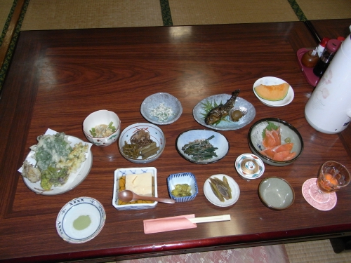 特に食事。ご主人のこだわりで、「山のものしか出さない」ということで、非常に豪華な夕食を用意していただきました。なかなか、ここまでの夕食を食べることってないと思います。