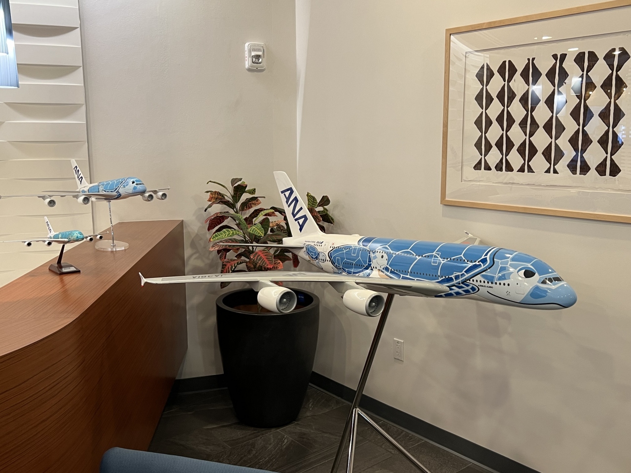 ワイキキショッピングプラザの中にあります。ANAで旅行をしている人のためのラウンジです。空港のANAラウンジとは違うので、食事はありませんが、飲み物のみ無料で頂戴できます。ツアーの予約や両替などもできるそうですが、20分の滞在で休憩しただけでした。それでも、ソファーで本当にゆっくりできます。