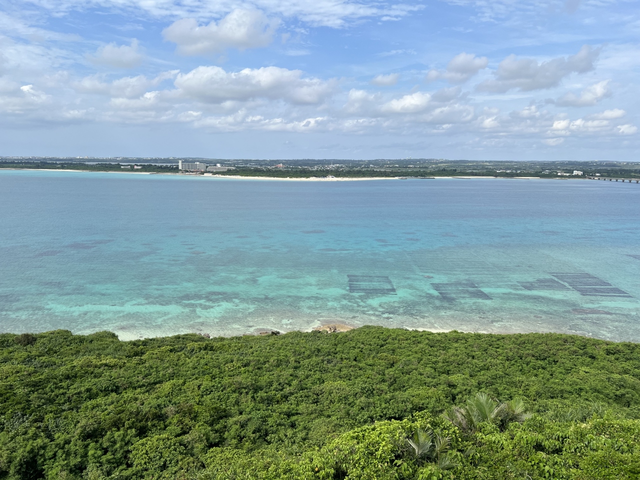 来間島にある展望台。海の南側なので逆光にならず、与那覇前浜も見えて、とても綺麗な眺めです。