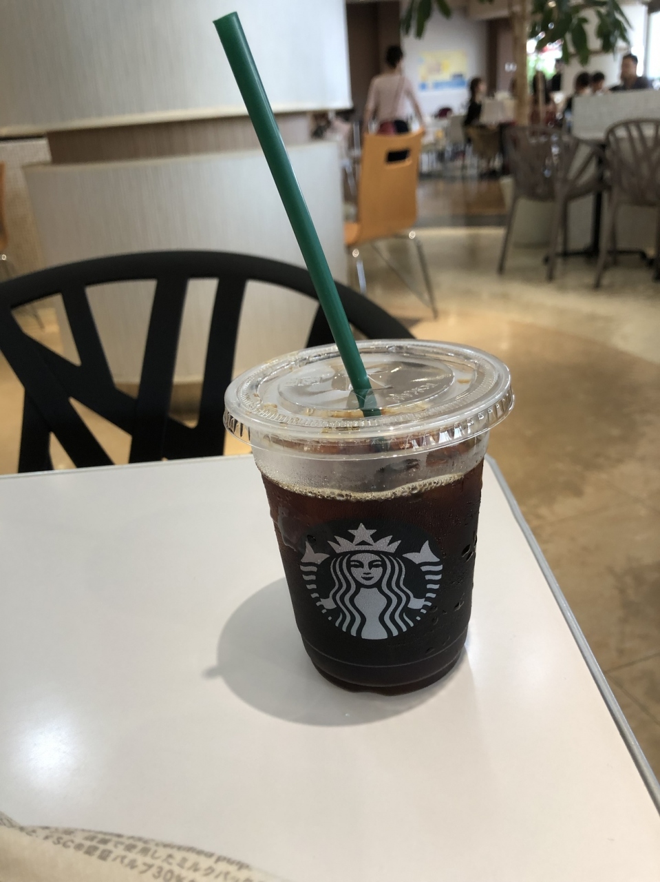スターバックスは有名なコーヒーチェーンですが、ここはクリスピークリームドーナツと並んでおり、席は併用しています。従って、単独店と違って、オシャレな椅子に座れることはありません。ただ、メニューは他の店と全く同じ。買い物中の休憩スポットとして、混んでました。