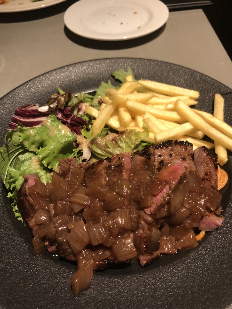 心斎橋と四ツ橋の間にあります。 中小企業が集まるビジネス街にひっそりとあります。ランチで寄りました。200gのステーキが1200円で食べれます。肉は少し固めですが、柔らか過ぎない分、変な加工肉でないことは明らか。歯ごたえもあって、味もよく、いい店を見つけました。