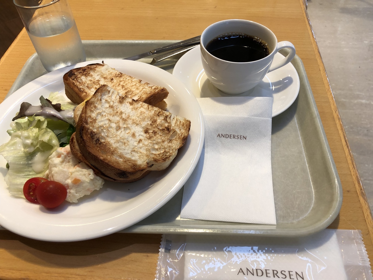 サンドイッチセットを頼みました。味もボリュームも朝食にはちょうどいいです。ホットコーヒーはお代わり自由でした。嬉しい。- 旅行時期