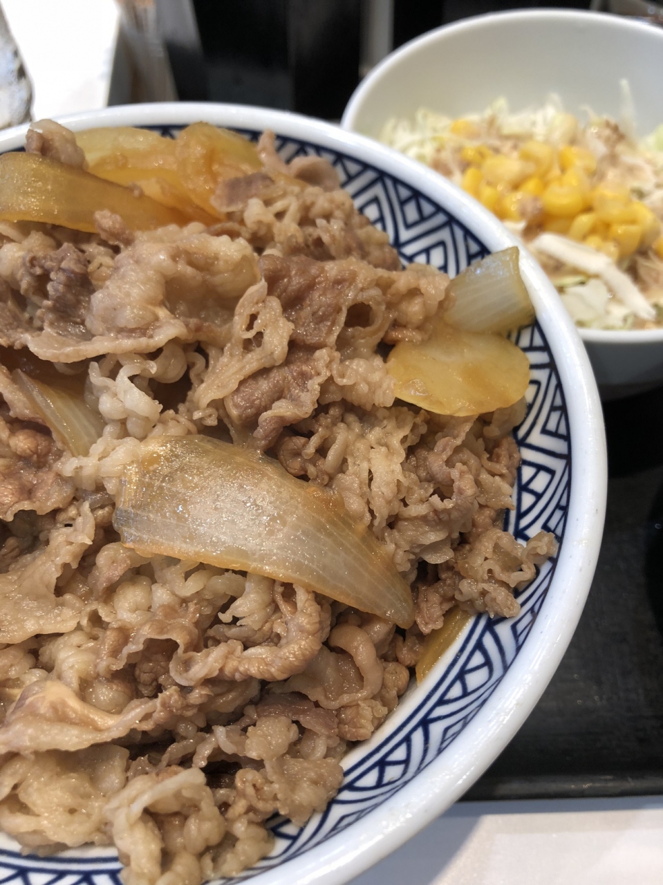 あの牛丼チェーン飲み物吉野家です。阪急梅田駅とヨドバシカメラの間にあり、大きな交差点そばなのでいつも混んでいます。特に週末はJRAの馬券売り場の近くというのもあって、大変です。カウンターのみで、割と窮屈ですが、味などは他の吉野家と同じです。