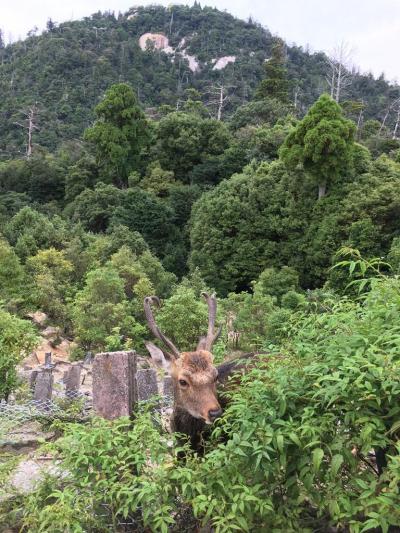 紅葉谷公園から宮島ロープウェイ乗り場まで行くバスです。5分くらいで到着します。ただ、バスを降りてからロープウェイ乗り場までは100段近くの階段を上がる必要があります。歩いても10分くらいですが、やはり少しでも楽な方がいいですね。