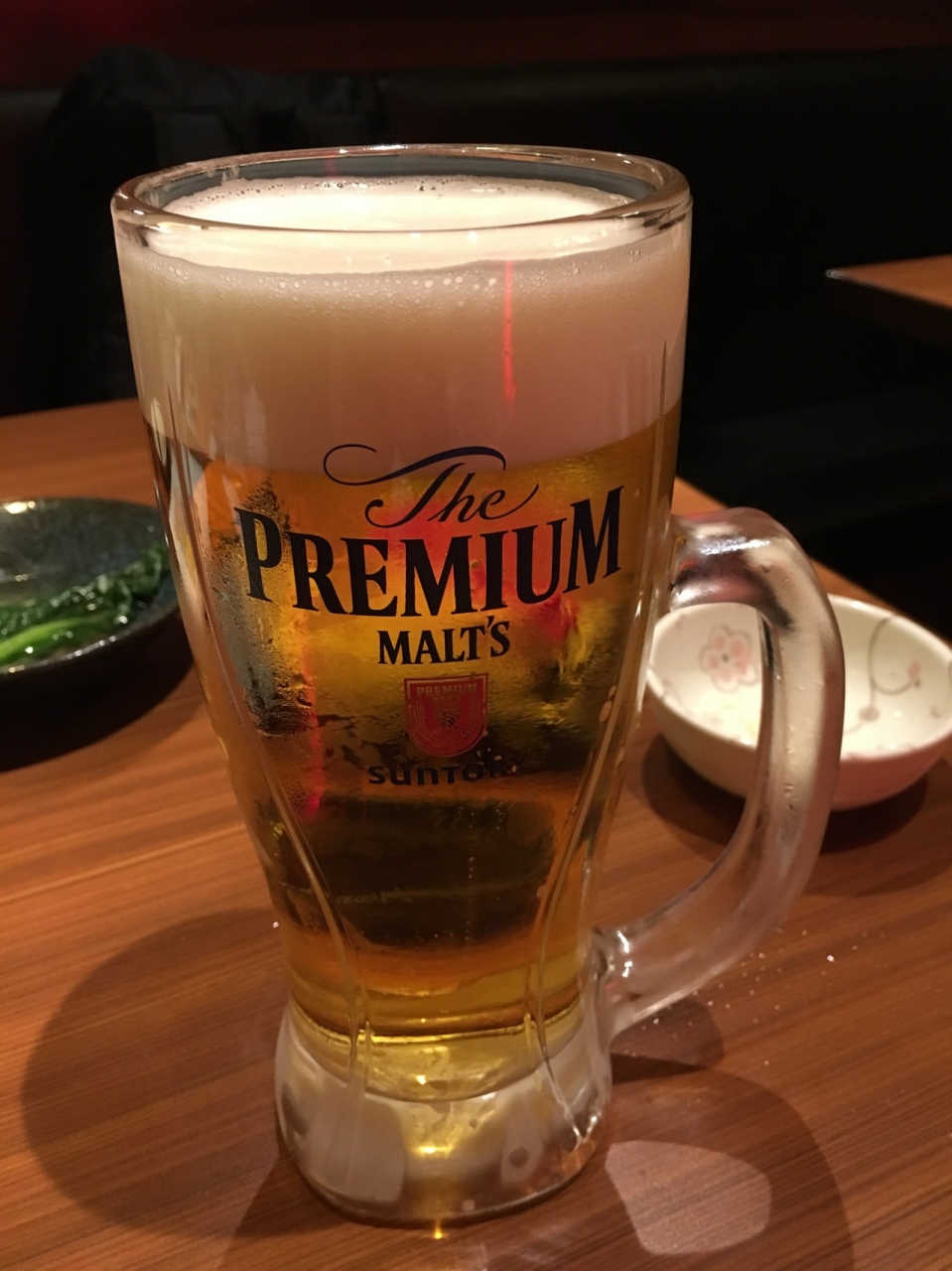 天満橋駅近くの谷町筋沿いにあります。ファミリーマートの2階にあります。少人数でオペレーションで対応しているので、遅いこともありますが、許せる範囲内です。先日、生大を注文したら、すごい大きなグラスが出て来ました。