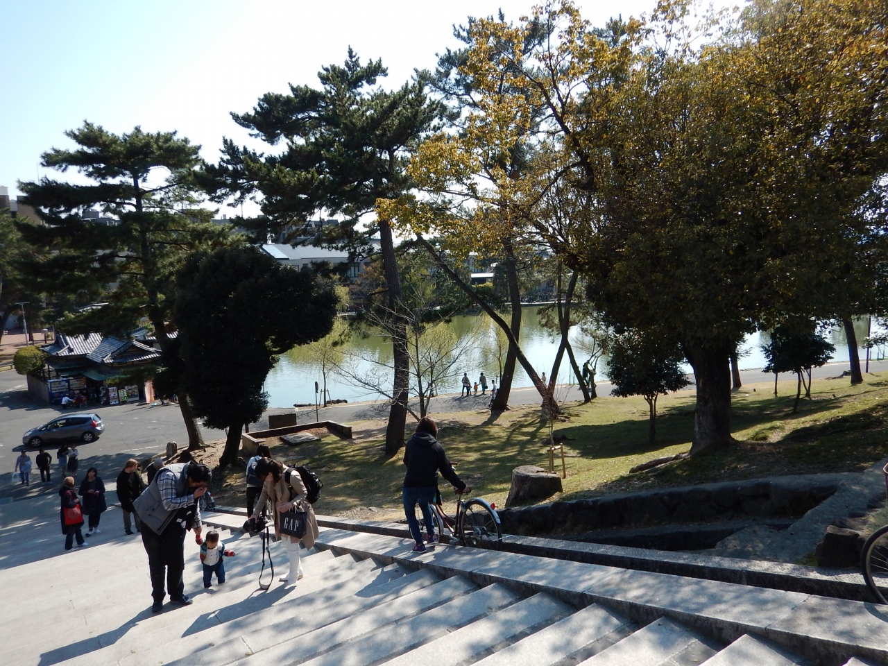 東大寺門前にある広場です。レストランやお土産屋さん、観光案内所、お手洗いもあります。駐車場も完備しておりますが、観光シーズンには利用者以外止めると思うので、当てにしない方がいいかもしれません。吉野葛を使ったレストラン、蕎麦屋、大仏プリンの店などもあります。