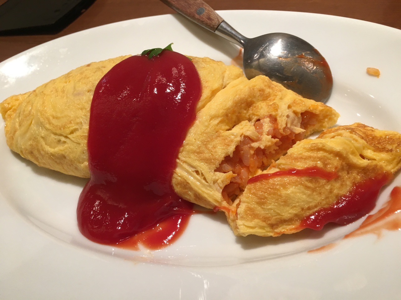 東京駅の八重洲口の地下にある洋食レストランです。店頭で見たオムライスが美味しそうだったので、入りました。パッと見た時は、ハンバーグ&オムライスがよさそうでしたが、お値段を見てチキンライスオムライスにしました。ケチャップが多すぎる気がしましたが、チキンライスも卵の部分も適度な薄味でよかったです。