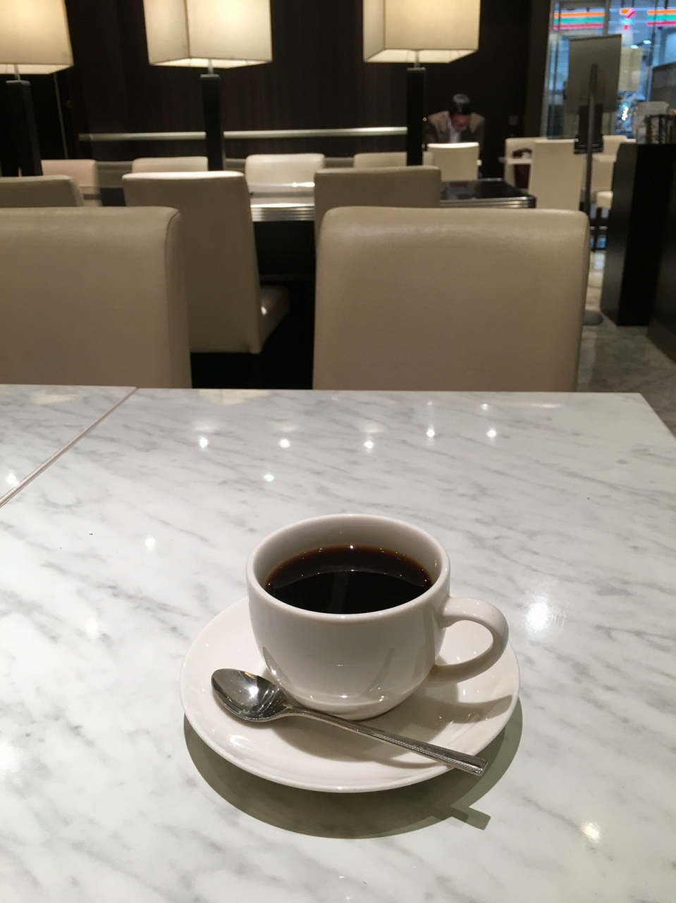 経団連会館の地下にあるカフェです。朝の10時くらいに行きましたが、ほとんど使っている人はおらず、穴場的な店でした。コーヒーを注文したら、マシンではなくサイフォンで淹れてくれました。その分、飲んでいたら美味しく感じました。