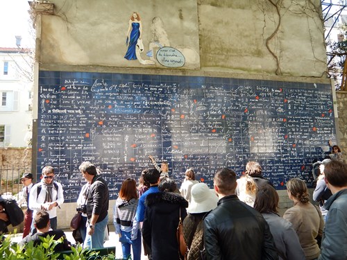 モンマルトルエリア、アベス駅の近くにあります。大きな壁に、世界中の言葉で「愛している」という意味のことが書かれています。