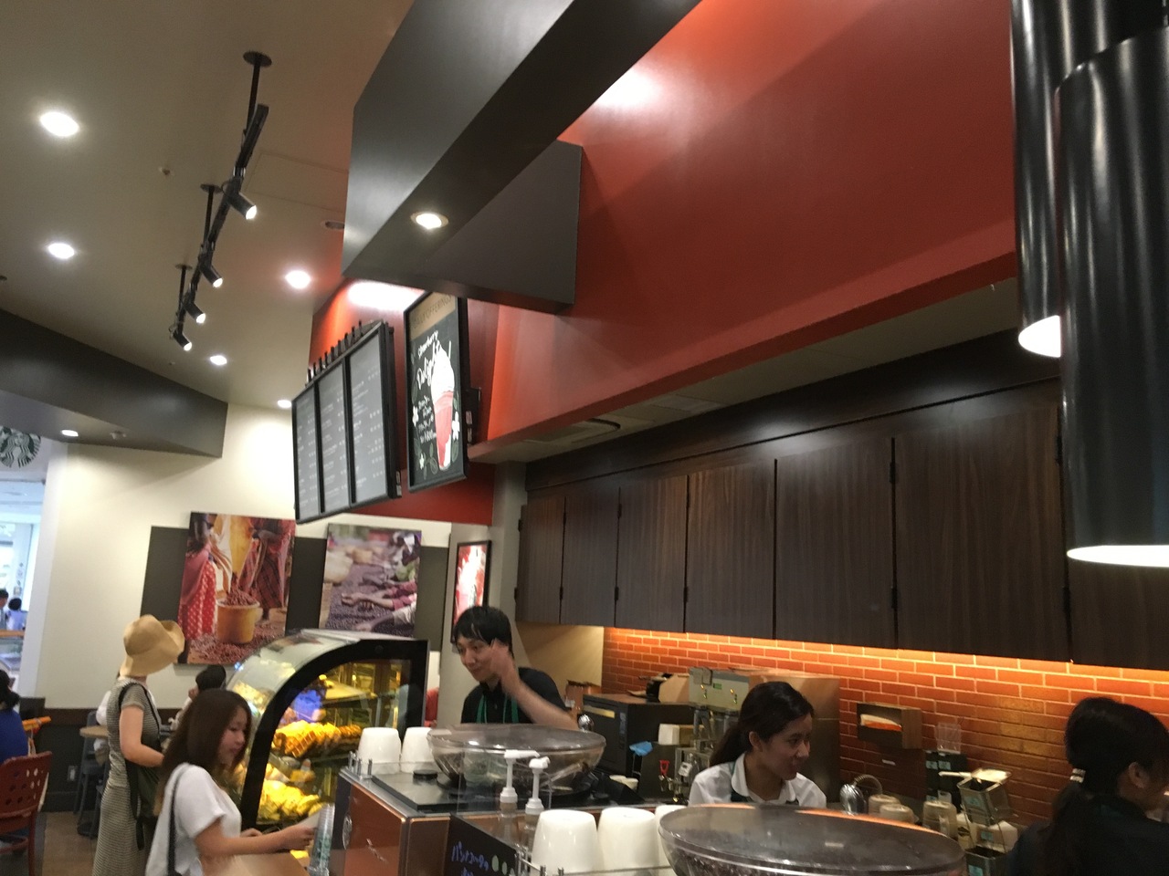 超有名なコーヒーショップのチェーンです。他のお店と同様に、暖色系の照明に照らさらた店内には高級感があります。