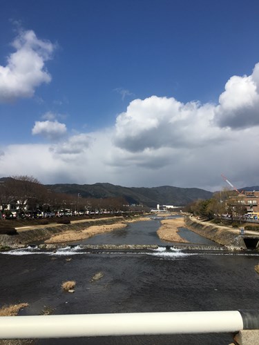 毎年2月に京都マラソンが開催されます。そして、鴨川沿いを走るコースが設定されています。川沿いの道を走るところもあれば、河川敷に降りて土の道を走るところもあります。せせらぎがランナーを癒してくれるので、走っていて楽しいところです。