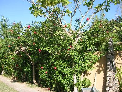 ヴィラの入り口には、たくさんのキレイな緑や花を壁一面に咲かせている。