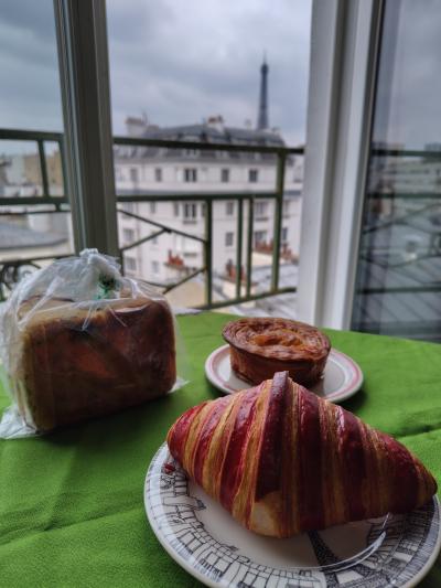 キノコのパンはお店で薄くスライスしてくれるので、チーズと一緒にアパルトマンで朝食にいただきました