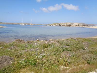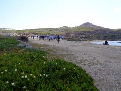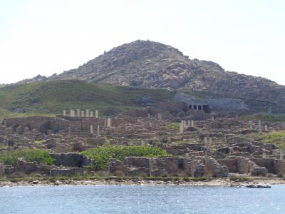 4月がオフシーズンに含まれるのかもしれませんが、ミコノス島からの船は往き10:00発、帰り13:30発の1便のみ。単純往復のチケットは25ユーロ、ガイド付きだと79ユーロで島の入場料も込みです。入場料は20ユーロ。