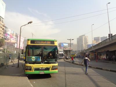 空港バスターミナルに着くと、手近なバスに「タハリール?」と尋ねて乗車。発車してから車掌が車内を廻って運賃を回収します。23EGP、200ポンド札で払ってお釣りが貰えました。
