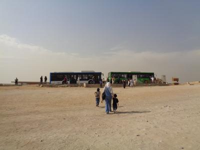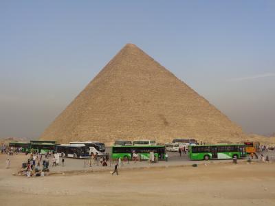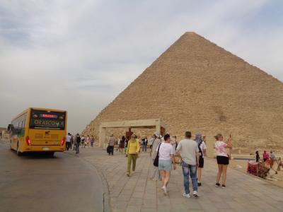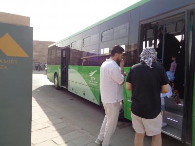 てっきりぐるっと周遊しているのかと思いましたが、カフラー王のピラミッドとクフ王のピラミッドの間を単純往復していたりと、色々な路線のバスがあるようでした。バス停にいるスタッフに尋ねて乗車しましょう。かなり頻発しており、各バス停に常に1台はバスがいると思います。- 旅行時期