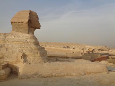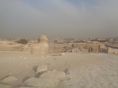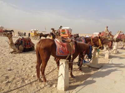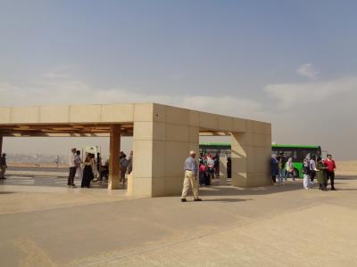 ピラミッドの敷地はとても広く、かなり歩く覚悟をしていましたが、各スポットを廻るHOP ONバスが運行していました。バス自体は路線バスのような車体で、三大ピラミッド、スフィンクス、パノラマ(ピラミッドが3つ重なって見えるポイントから徒歩10分くらいの所)などにバス停が設けられています。