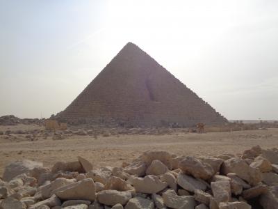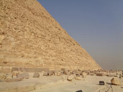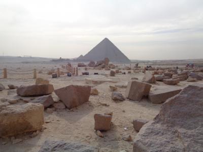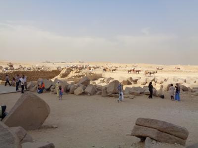 カフラー王のピラミッドの周りは巨大な岩がゴロゴロしており、上から転がり落ちたのかな?でも色が違う。