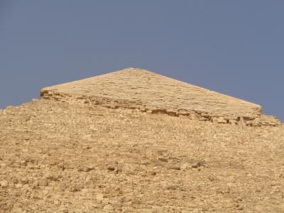 てっぺんに化粧石が残っているのが特徴的なピラミッド。最下段の石の高さが2mくらいあって、3つのピラミッドの中で一番大きかったです。