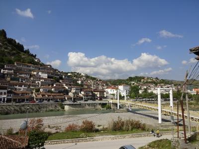 千の窓の町ベラットのイメージであるあの建築様式、てっきり特に密集しているのがベラットで途中の町にもちらほらあったりするのかなと思っていましたが、ベラットのバスターミナルで降りて歩いてみるとその辺りの建物は全く普通の…むしろ南アジアで見るような感じの壁の薄そうな建物ばかりでした。