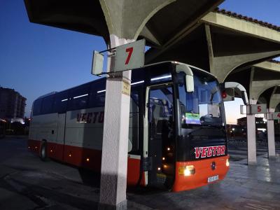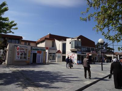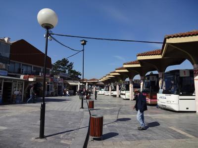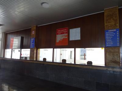 チケット売り場は建物内にあります。スコピエ行きのバスについて尋ねると、早朝5:30と9:00発の2本で、チケットは車内で購入(9ユーロ)とのこと。