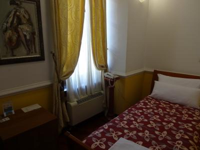 1人で泊まりましたが、なんとベッドが3つもある部屋でした。最上階で窓からの眺めが良かったです。夜に帰ってきたら階段が完全な闇で、部屋の鍵を開けるのに苦労しました。