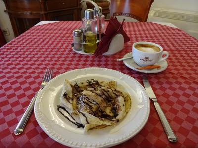 部屋数が少ないため、朝食はフルサービス。朝食会場は2階ですが、レセプションに声を掛けてから用意してもらうシステムのようです。甘いパンケーキ(クレープのようなもの)やオムレツなど、複数の選択肢がありました。- 旅行時期