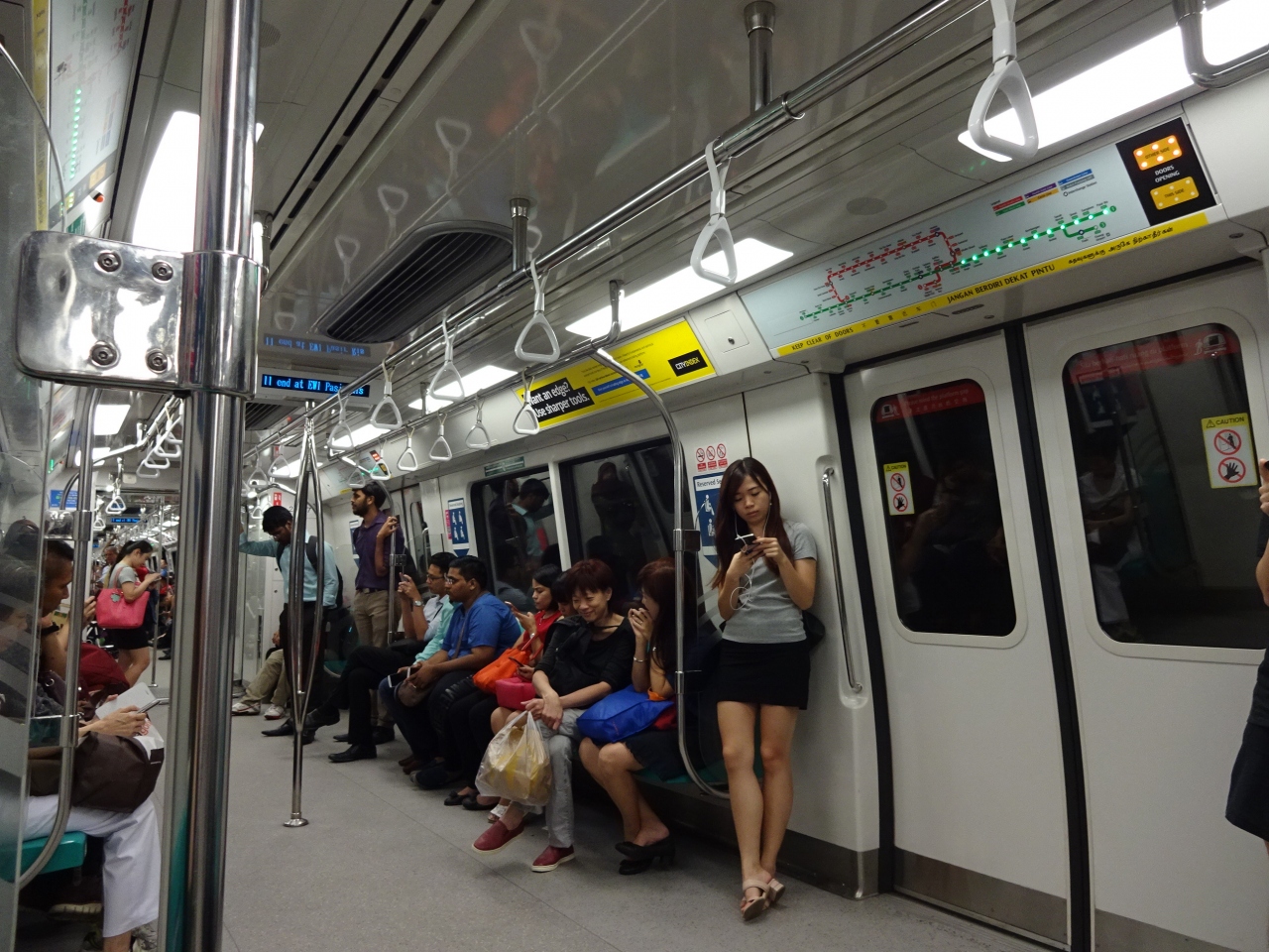 座席は1人分づつ窪んでおり、日本の車両より左右の広さにゆとりがあるように感じました。夕方にチャンギエアポート駅から市内へ向かったら、かなりの満員で全く座れませんでした。- 旅行時期