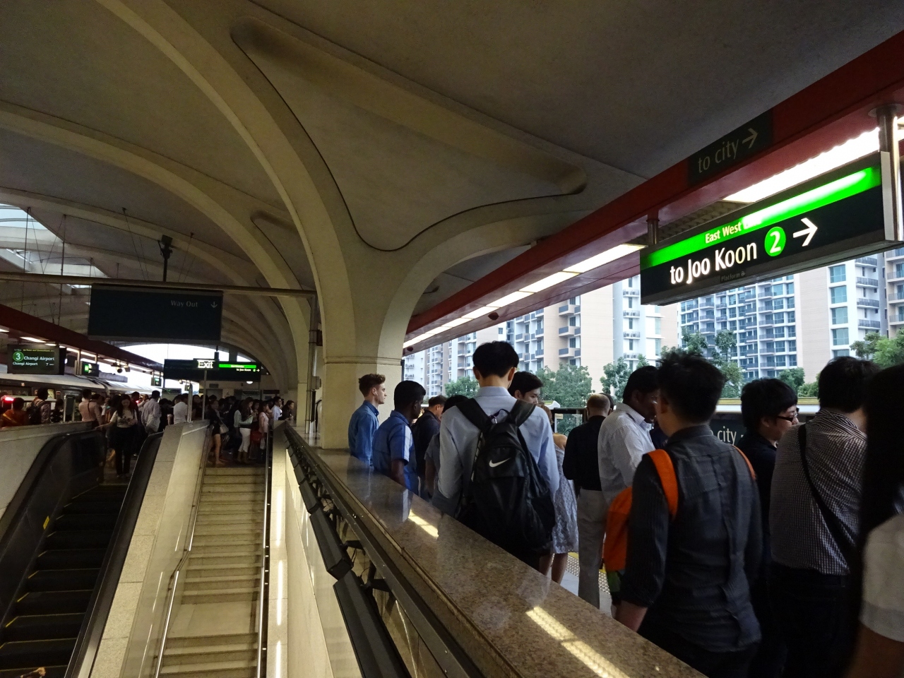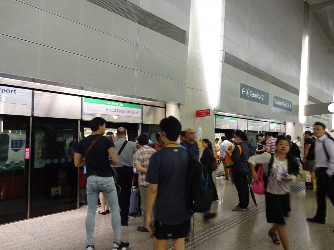チャンギ国際空港内にある地下鉄駅です。ホームは3つのターミナル共通で、左右どちらに進めばどのターミナルに行けるかの表示がありました。ターミナル同士は結構離れているものと思い込んでいたので、徒歩圏内にあるというのは意外でした。